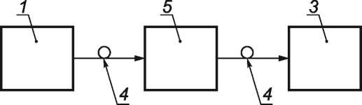 1 — источник оптического излучения из состава РЭСМ; 2 — волоконно-оптический соединитель; 3 — измеритель мощности из состава РЭСМ; 4 — волоконно-оптический кабель; 5 — поверяемый аттенюатор