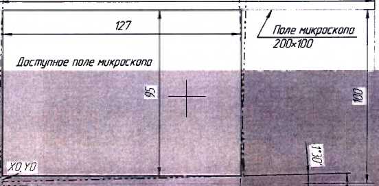Рисунок Б.4 — Расположение плиты относительно поля микроскопа и положение доступного поля в 1 позиции.