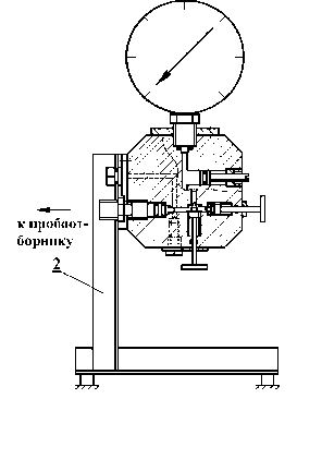 6.2.5. После установления циркуляции, открыть вентиль (9), довести поршень (4) вправо до упора (см. рис. 1), закрыть вентиль (9), отвести поршень влево на три оборота лимба (8), открыть кран (10) и сделать выдержку.