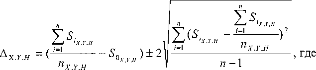 S), у н - эталонные значения координат X, Y, Н задаваемые имитатором сигналов, мм;