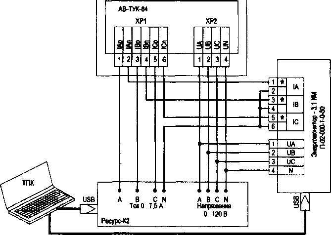 Рисунок 8 - Схема подключения для поверки модуля АВ-ТУК-85
