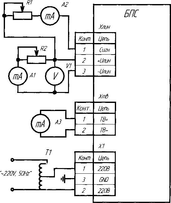 6.2.4.1 Проверку параметров искробезопасных цепей блока БПС-21М-1ВБ проводить следующим образом:
