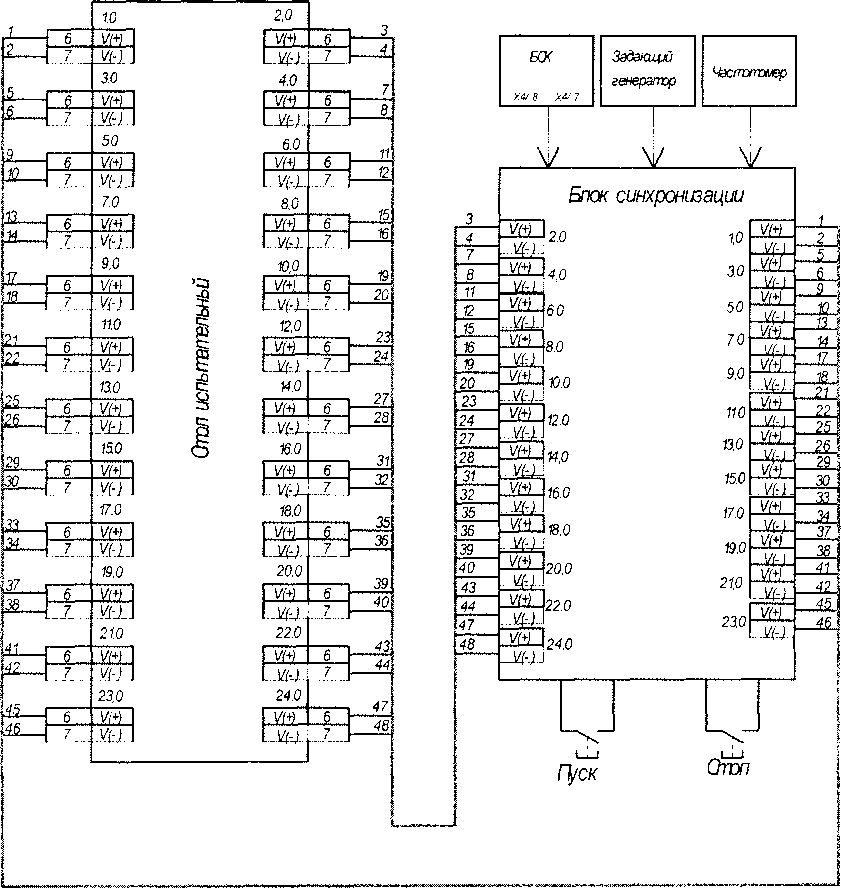 (Уема подклкления блока синхронизации и контрольно- измеритвльньк приборов к рабочему снопу.