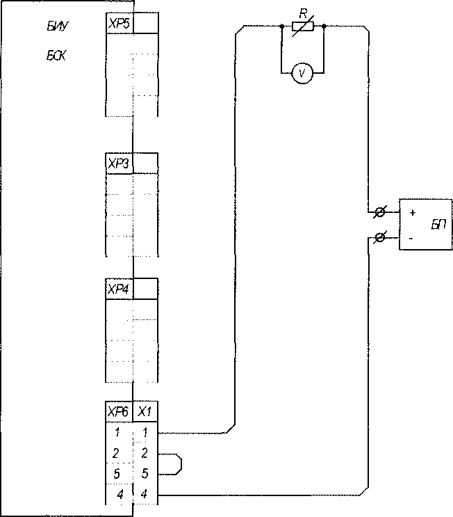 БП- блок пития регулируемой (0..30 В) Б0<. - блок системного контроллера БИУ Х1 - разъем кабеля В46.00-24.00.