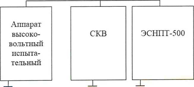 10.1.2 Соберите схему, приведенную на рисунке 2 для напряжений 0,1 и 0,5 кВ, и схему, приведенную на рисунке 3 для напряжений 1 кВ и выше.