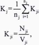Kjik(ji) - значение коэффициента преобразования для i-ro измерения в j-ой точке рабочего диапазона измерений объемного расхода, имп/м3;