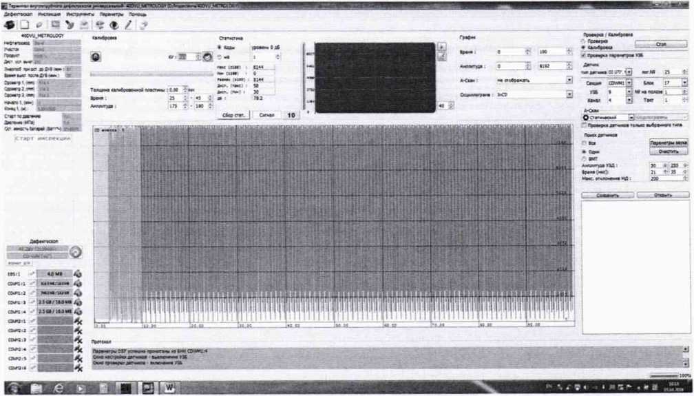 8.4.4.33 Дефектоскоп считается прошедшими операцию поверки с положительным результатом, если диапазон измерений амплитуды эхо-сигнала составляет от 9 до 40 дБ, а рассчитанные значения допустимой абсолютной погрешности измерений амплитуды эхо-сигнала составляет не превышает значений ± 3 дБ.