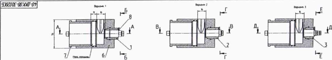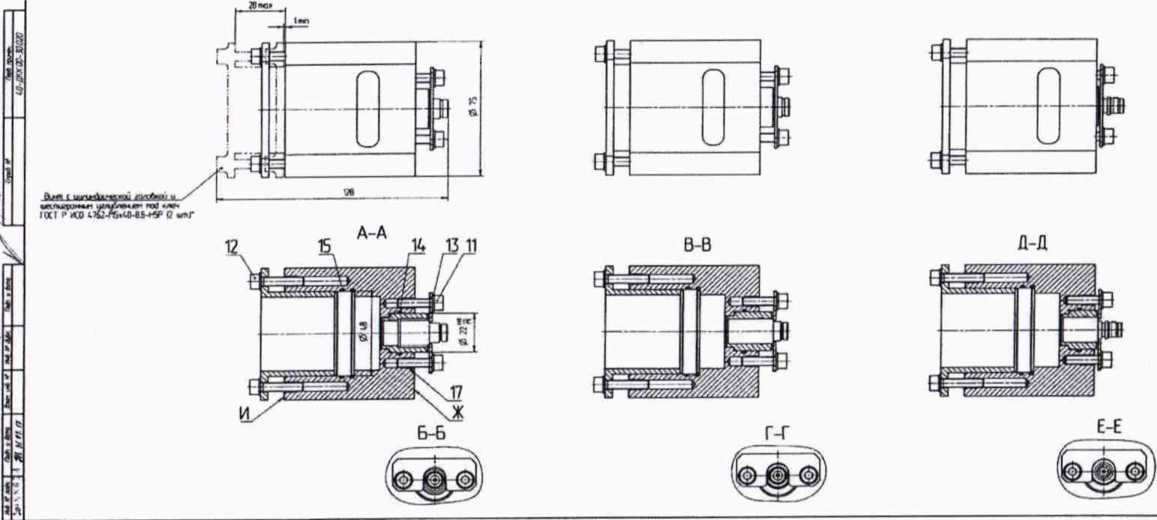 (диапазон воспроизведения толщины стенки меры от 9,8 до 25,5 мм, абсолютная погрешность воспроизведения толщины стенки меры ± 0,3 мм); ФВ 1220-8.2-44 - мера моделей дефектов - фланцевая вставка, (диапазон воспроизведения толщины стенки меры от 11,0 до 26,8 мм, абсолютная погрешность воспроизведения толщины стенки меры ± 0,3 мм). | |