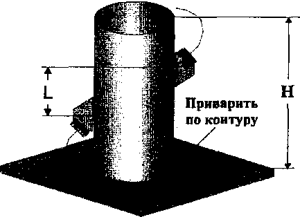 Высота цилиндра Н определяется расстоянием между УП вдоль продольной оси отрезка трубы - L и размерами монтажных приспособлений, используемых для их установки на трубе.