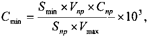 Предел детектирования (Cmin), мкг/дм3, определяют, дозируя в прибор 50 мкл раствора 2 (см. Приложение) с последующим вычислением по формуле (1) где Smin - минимально определяемая площадь пика, мВ-c (см. таблицу 2);