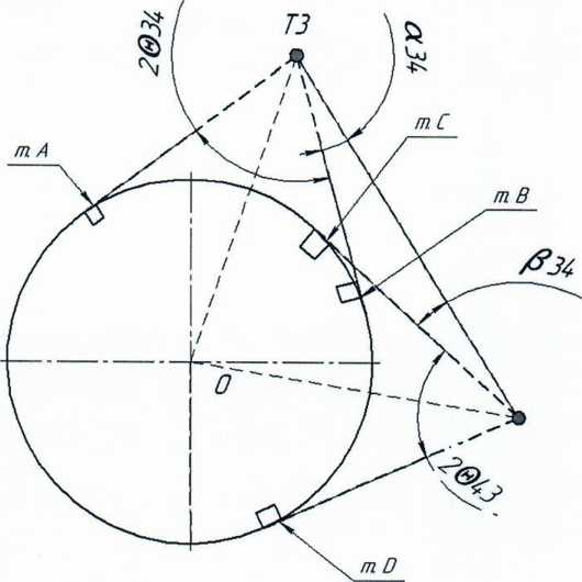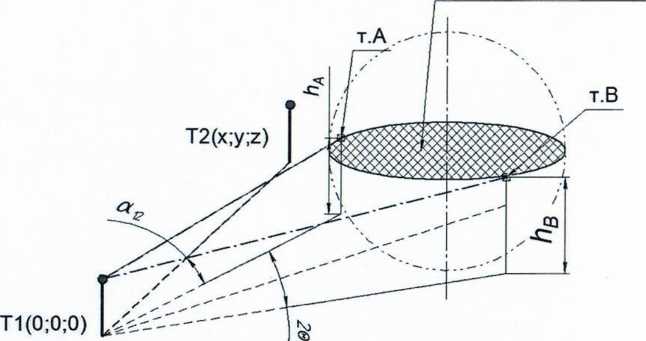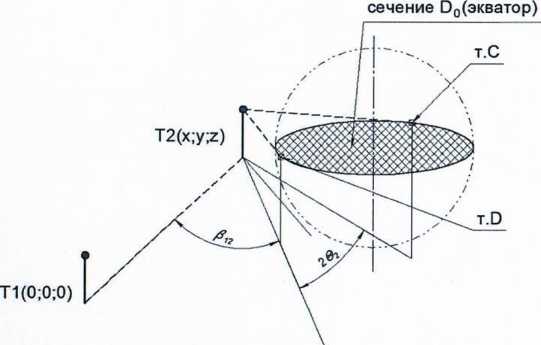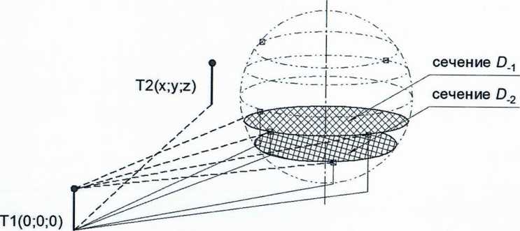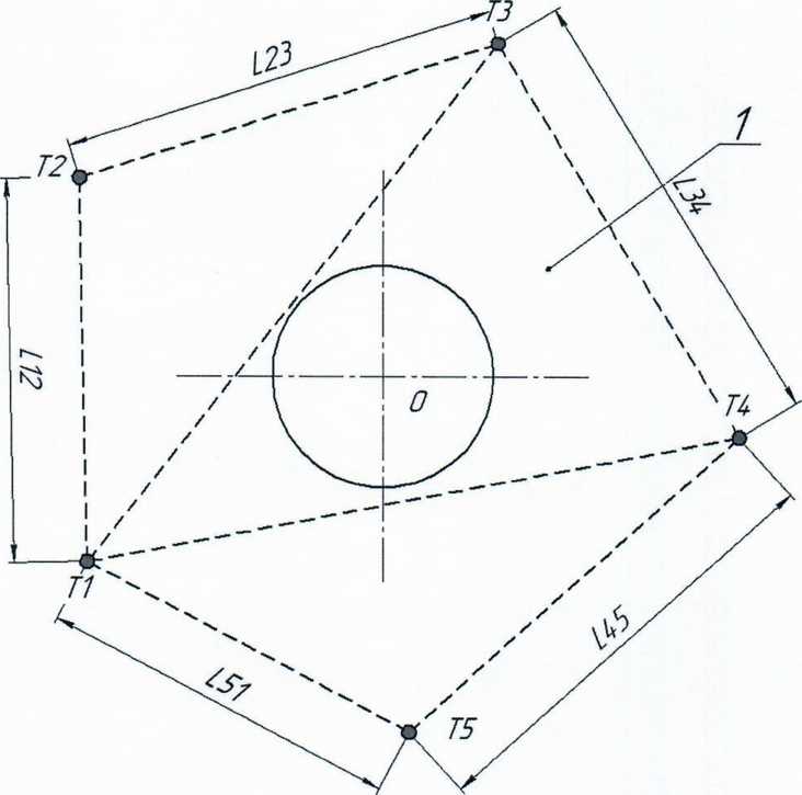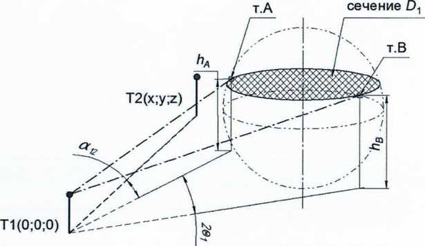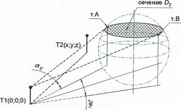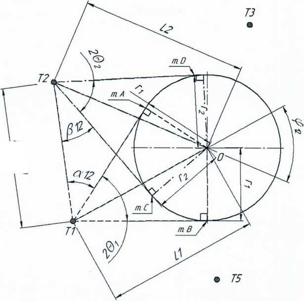 4.2 Определяют диаметры резервуара в горизонтальных плоскостях (рисунок А.6) по результатам линейно-угловых измерений координат опорных точек, расположенных на касательной вертикальной плоскости и линейных расстояний между станциями съемки.