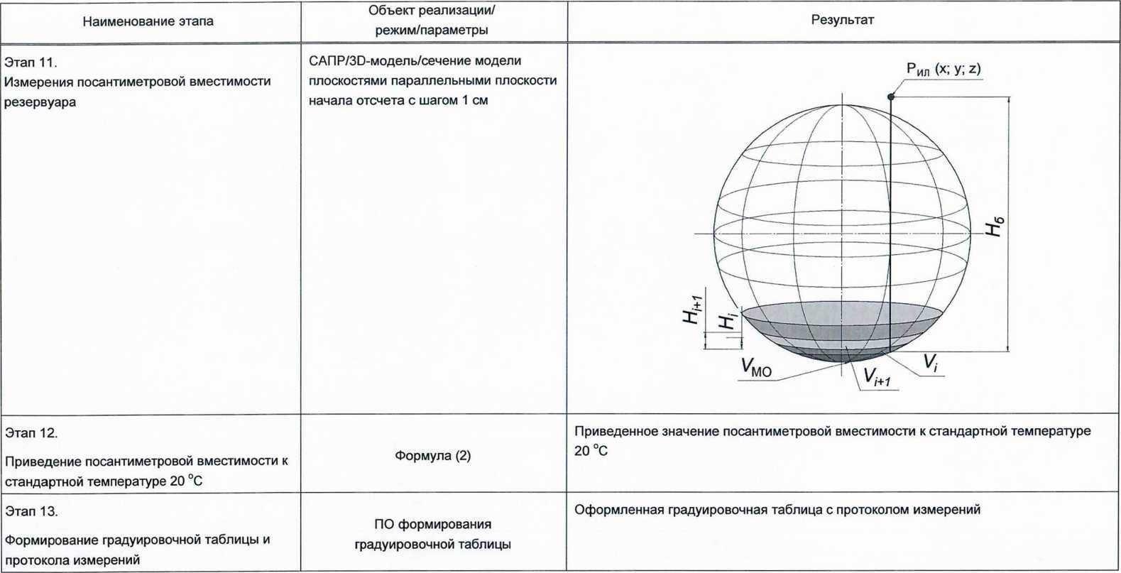 3.5 градуировочная таблица: Зависимость вместимости от высоты уровня наполнения резервуара при нормированном значении температуры, равной 20 °C.