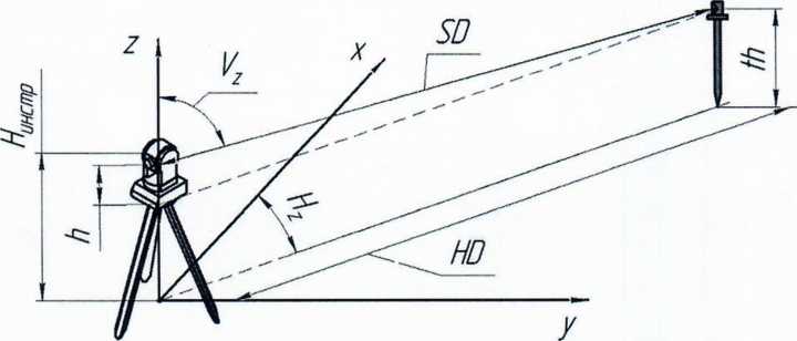 3.4 горизонтальное проложение HD: Проекция измеренного наклонного расстояния на горизонтальную плоскость (рисунок А.2).