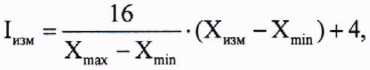 а) при линейной функции преобразования значение силы тока 1^, мА, рассчитывают по