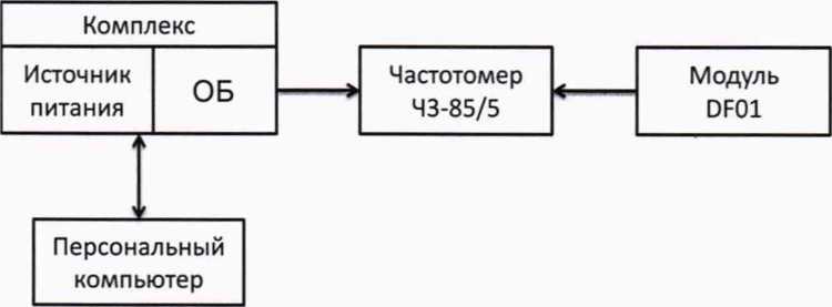 7.3.1 Собрать схему в соответствии с рисунком 1. Подключить выход 1PPS источника точного времени к входу первого канала частотомера. Подключить выход 1PPS испытуемого комплекса к входу второго канала частотомера входящим в комплект поставки кабелем.