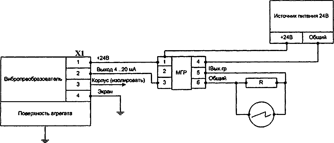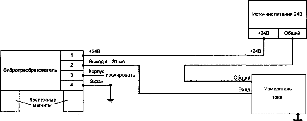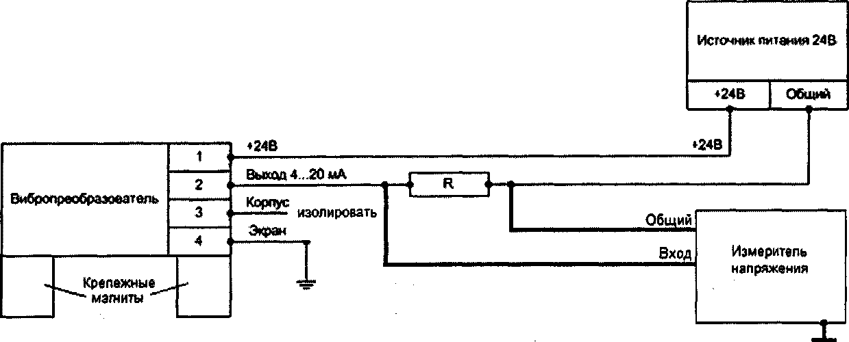 Приложение Б Схема подключения вибропреобразователя.... Приложение В Чертежи кронштейнов для установки датчика Приложение Г Форма протокола поверки............................
