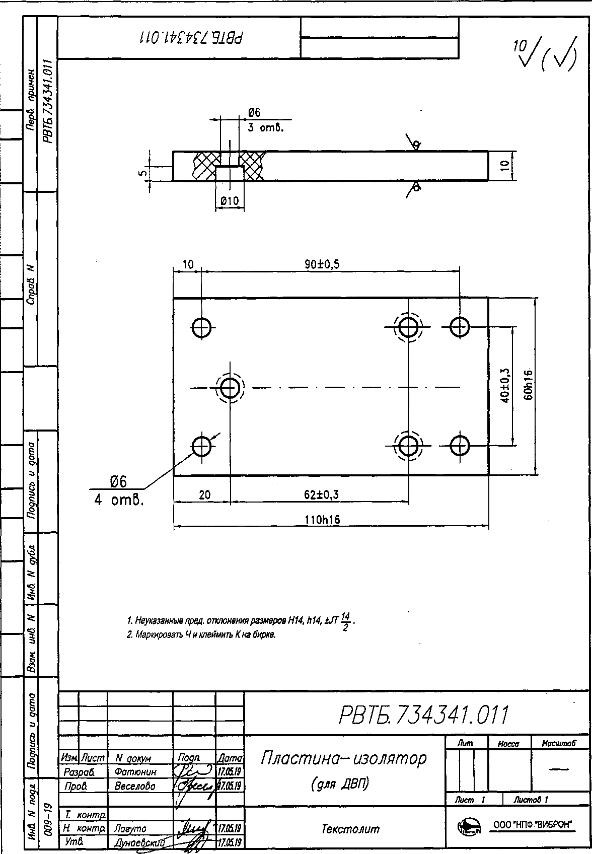 новыми разделами при расширении номенклатурного ряда вибропреобразователя или его модернизации. * *■ *