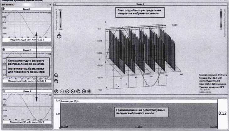 • Окна амплитудно фазового распределения импульсов по каждому каналу;