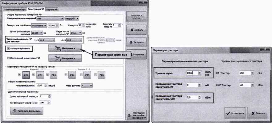 - Параметры триггера - > Уровень шума - 1000 имп/сек;