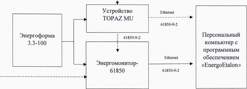 6) при помощи ПО «EnergoEtalon» зафиксировать преобразованные значения испытательных сигналов, переданных по цифровому протоколу МЭК 61850-9-2 от поверяемого устройства и Энергомонитора;