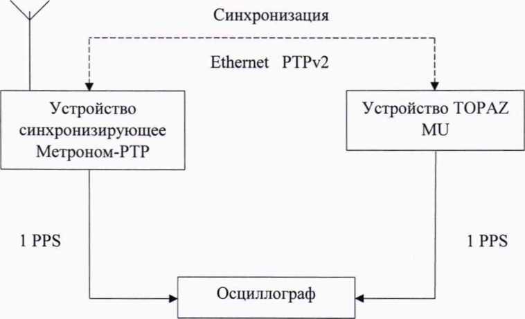 4) синхронизировать поверяемое устройство и эталонное оборудование по интерфейсу 1PPS при помощи Метроном-РТР;