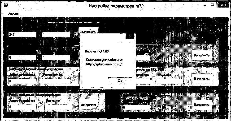 4.2.1 Определение номера версии автономного ПО «Set mTP User» нужно воспользоваться вкладкой «Версия». Появится новая форма с номером версии ПО. (Приложение 2)
