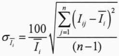 9.3.1.2 Производят не менее 5 измерений выходного сигнала для не менее 3 элементов. Рассчитывают относительное СКО результата измерений выходного сигнала (ст-) по формуле