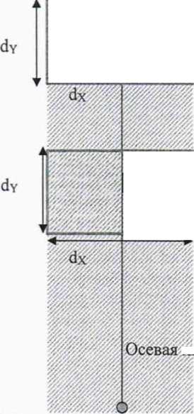 - с помощью лазерного дальномера установить отражатели на расстояниях 19 416 ± 20 мм (dl) и 38 459 ± 40 мм (d2) от начала координат. Первый отражатель не должен закрывать собой второй. Программа поверки измерительного блока выполняет поиск отражателей в зоне примерно ±1 м относительно осевой линии (dx - 2 м) и ± 4 м относительно опорных расстояний dl и d2 (dy= 8 м). Во всей этой зоне не должно быть каких-либо отражающих предметов, которые могут помешать проведению измерений.