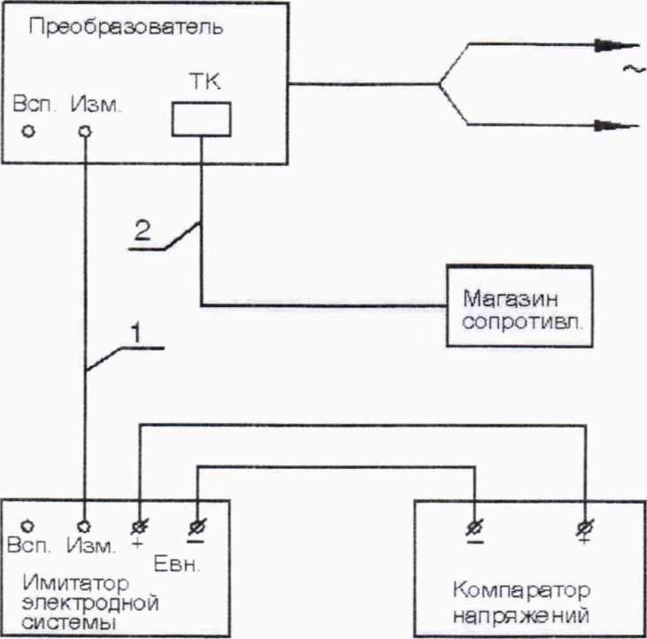 Компаратор напряжений РЗООЗ ТУ25-04.3771-79, диапазон измерения от Одо 11,11 В. класс точности 0.0005; Имитатор электродной системы типа И-02 ТУ25-05.2141-76. Rn = 0. (500 1000) МОм ± 25%. R 8 = 0, (10 20) кОм ± 1%. |