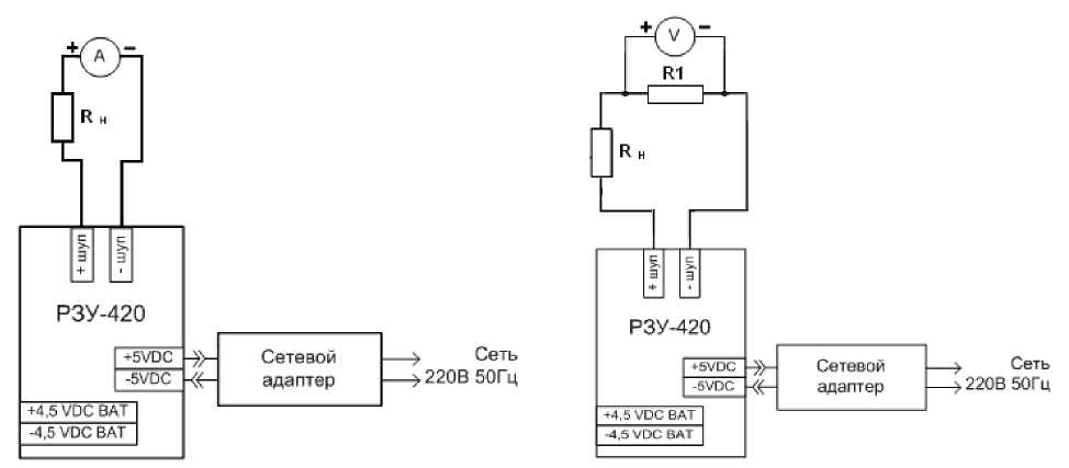 А - миллиамперметр; V - вольтметр; R1 -мера сопротивления однозначная 100 Ом; RH - резистор (360 ±10) Ом.