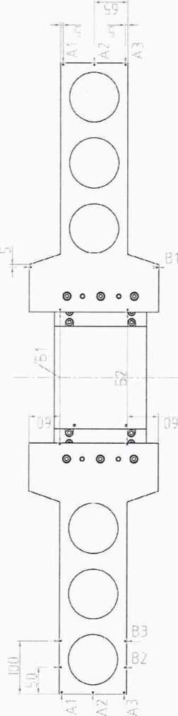 Схематическое изображение приспособления для измерения расстояния между контрольными точками «Б1», «Б2» настроечных образцов 1и 2