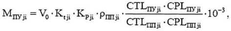 СТЬпп - коэффициент, учитывающий влияние температуры на объем продукта, определенный для tnn и pis;