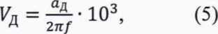 Примечание:1 Значение виброскорости Рд, мм/с, задаваемое с помощью поверочной установки, вычисляют по формуле