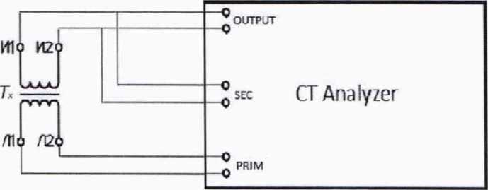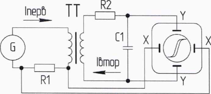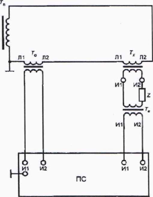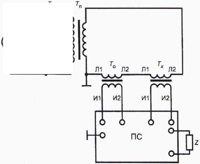 Рабочий эталон 2 разряда единиц коэффициента и угла масштабного преобразования синусоидального тока, приказ Федерального агентства по техническому регулированию и метрологии от 27 декабря 2018 г. № 2768, трансформатор тока измерительный лабораторный ТТИ-5000.51 (регистрационный номер ФИФ 55278-13) или два ТТИ-5000.5 (регистрационный помер ФИФ 27007-04); Прибор сравнения КНТ-05 (регистрационный номер ФИФ 37854-08); Анализатор трансформаторов тока СТ Analyzer (регистрационный номер ФИФ 40316-08); Осциллограф цифровой запоминающий HDO4054 (регистрационный номер ФИФ 53644-13); Нагрузочный трансформатор с номинальным током, обеспечивающим 200 % номинального первичного тока поверяемого трансформатора: Калиброванное нагрузочное устройство до 100 В-А - при cos (р = 0.8 (cos <р = 1), например 11 Г Г 50.5-1. |