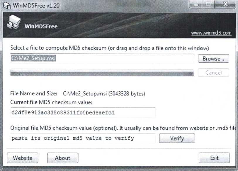 7.2.1.2.2 На ПК с установленным ПО «Ме2» запустить ПО «WinMD5 Free»,.