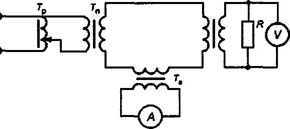 Тр - регулирующее устройство (автотрансформатор); Тп - понижающий силовой трансформатор; Тх - поверяемый трансформатор тока; Тв - вспомогательный трансформатор тока; R- резистор