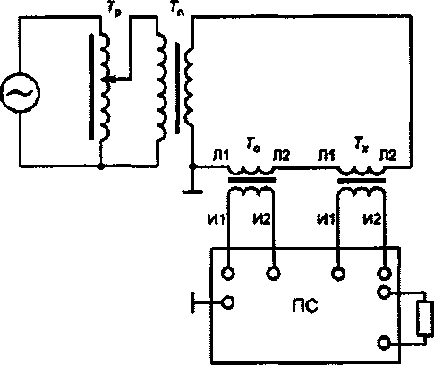— сеть (генератор); Тр - регулирующее устройство (автотрансформатор); Тп - понижающий силовой трансформатор; Го - рабочий эталон; Тх - поверяемый трансформатор тока; Ль Лг - контактные зажимы первичной обмотки; Иь Иг - контактные зажимы вторичной обмотки; Z - нагрузка; ПС - прибор сравнения