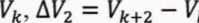 Vk> Vk+2 ~ дозовые вместимости резервуара при наливе в него к — 1, к, к 4-1, к + 2 доз жидкости, соответствующие уровням наполнения Нк_г; Нк; Нк+1; Нк+2* м3;
