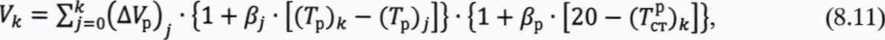 Рр - коэффициент объемного расширения материала резервуара (рр = 37,5 • 10_6), °C'1; (Ок - температура стенки резервуара ((Т^)к = (Тр)к), °C.