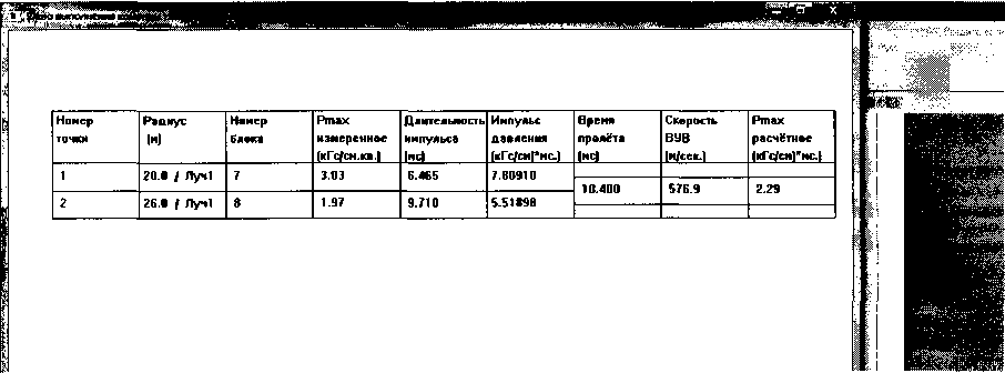 - выполнить функцию «Вывод данных испытаний комплекса ИВК АЦИД одного опыта в табличном виде» и далее «Сводная таблица», в сводной таблице будет помещено значение максимального давления от установки УБК-2М: