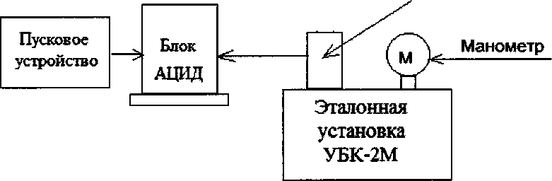 Рисунок А.2 - Схема подключения блока АЦИД для регистрации сигнала импульса давления от эталонной установки УБК-2М при проверке диапазона измерения давления