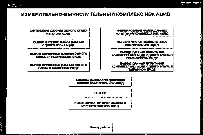 - по окончании считывания на системном диске компьютера сформируется файл данных регистрации текущего опыта, который при чтении его с диска идентифицируется датой испытания, номером блока АЦИД и номером опыта.