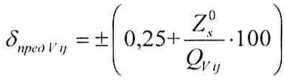 Основную относительную погрешность СРМ при измерении объема жидкости в потоке при использовании частотно-импульсного выхода $///, в процентах, вычисляют по