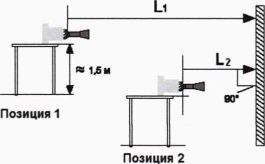 7.3.2.2 Закрепленный уровнемер на подставке или имитатор, как показано на рисунке 1, устанавливают в позицию 1 на расстояние L1, проводят измерения и записывают в протокол измеренные значения расстояния Ьуэ и Lyi в позиции 1 по рулетке (Ly,) и с дисплея модуля индикации и настройки уровнемера, либо из соответствующего поля окна приложения настройки (Lyi).
