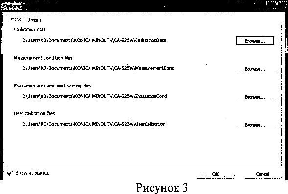 7.4.3 Убедиться, что выключатель электропитания находится в положении OFF (О). Подключить адаптер электропитания прибора к сети переменного тока. Перевести тумблер питания в положение ON (I). Включить компьютер и запустить программное обеспечение CA-S25w, появится диалоговое окно «Options» (рисунок 3). Подключить приборы к компьютеру, на который установлено программное обеспечение CA-S25w, с помощью интерфейсного кабеля USB и нажать кнопку «ОК».