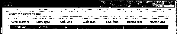 7.4.4 Откроется диалоговое окно «Connect» (рисунок 4). Выбрать прибор, нажав на его серийный номер. Если объектив прибора, который вы хотите использовать, отмечена знаком «А», вставьте DVD, соответствующий серийному номеру вашего прибора, с необходимыми данными калибровки в привод DVD и нажмите кнопку «Install calibration data». Установка начнется автоматически. Выбрать тип объектива в соответствии с комплектацией прибора: «Std.lens» (Стандартный объектив), «Wide lens» (широкоугольный объектив), «Tele.lens» (телеобъектив), «Macro 1 lens» (телеобъектив с макрокольцом 1) или «Масго2 lens» (телеобъектив с макрокольцом 2). Нажать кнопку «Connect». При появлении диалогового окна «Instrument information» закройте его.