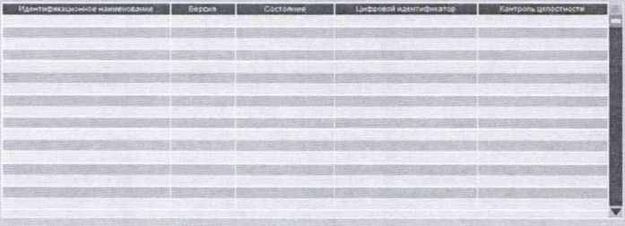 На экранной форме в виде таблицы отображаются идентификационные данные метрологически значимой части ПО ИВК. Метрологически значимая часть ПО представлена набором программных модулей, выполняющих определённые вычислительные операции.