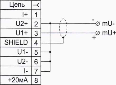 Рисунок А.5 - Соединительный кабель КИ №06 U1 для измерения напряжения от минус 100 до плюс 100 мВ
