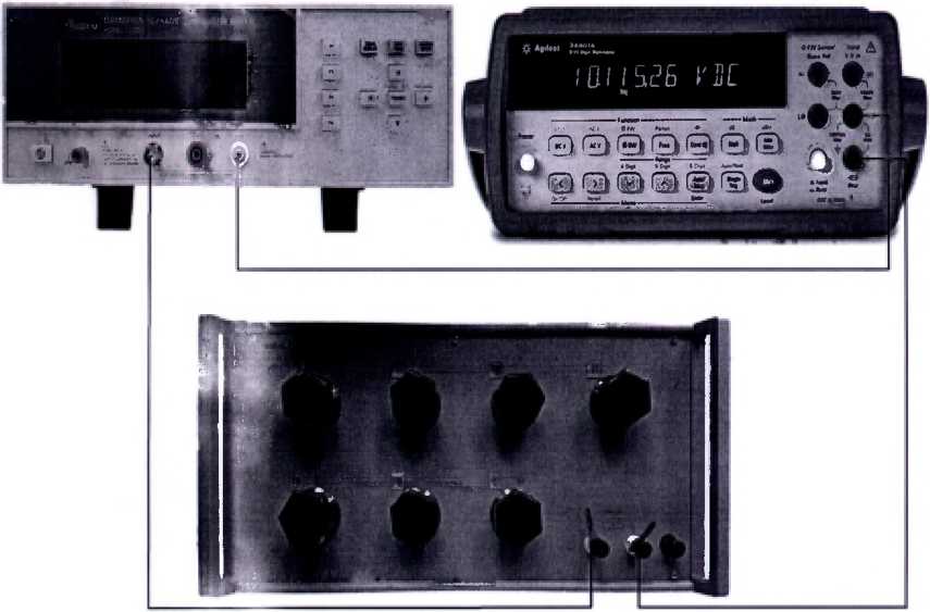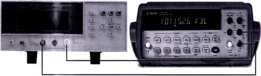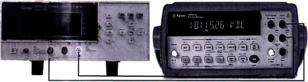 - разъемы испытуемого измерителя соединить измерительными проводами с соответствующими разъемами мультиметра цифрового 34401А (см. рисунок 1);