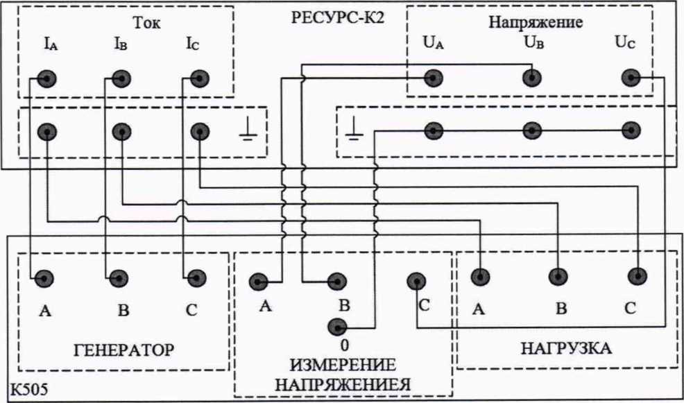 - Uk505 - измеренные значения напряжения по каждой фазе (Ukso5(A), Ukso5(B), Uk5O5(C)) поверяемым комплектом;